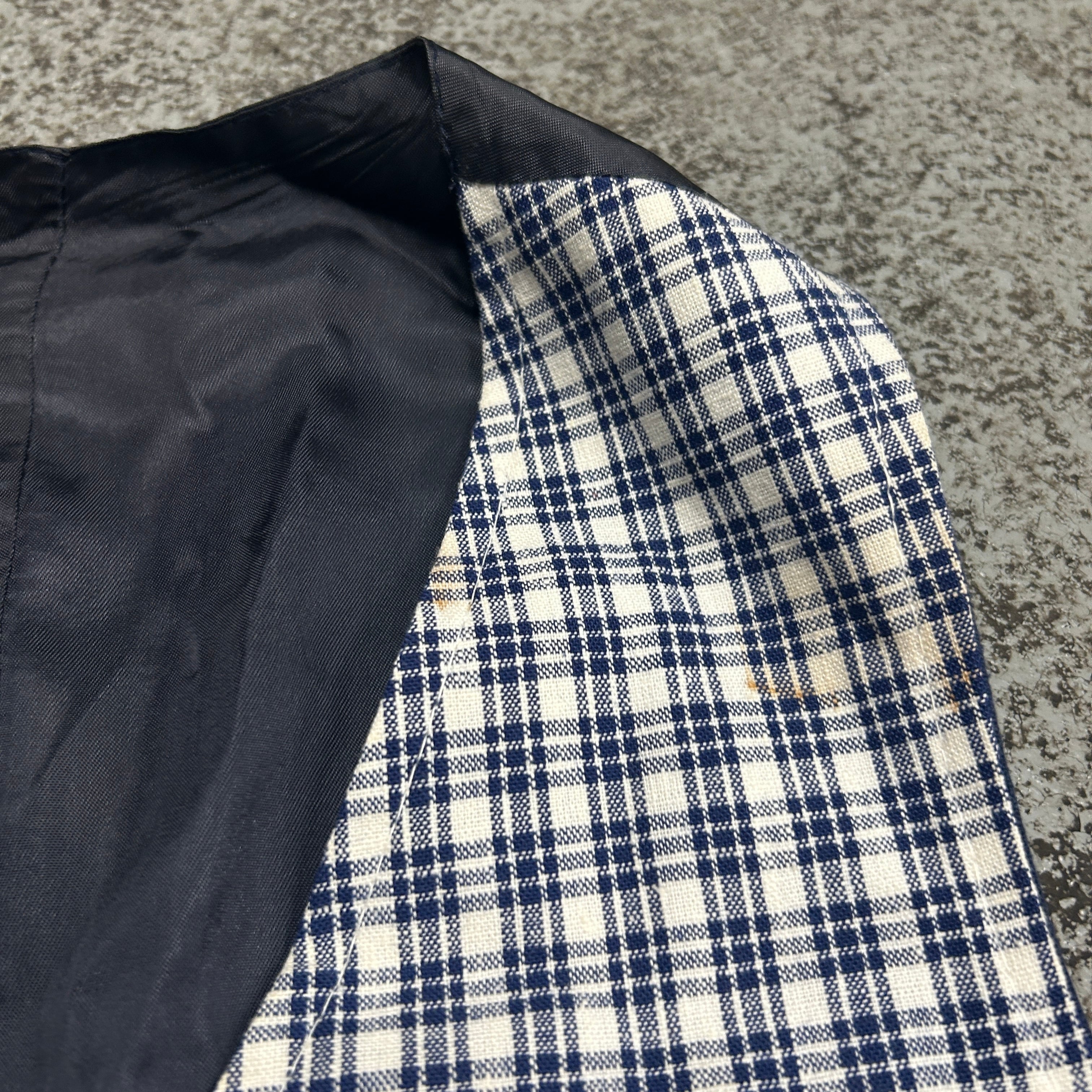第1ボタン付近と裾付近に薄いシミ、左肩付近にシミ有り